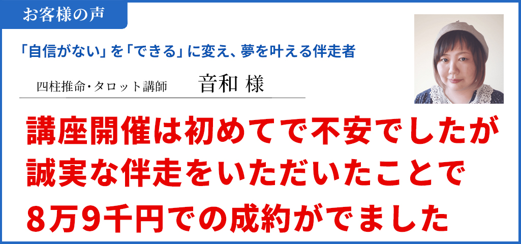 集客の方法だけでなく、その後の売り上げにつなげる方法まで丁寧に教えていただける点が魅力でした。